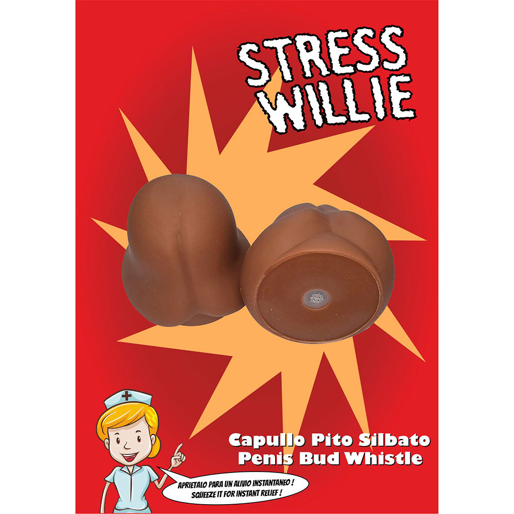 Añade diversión y picardía a cualquier ocasión con este capullo color mulato con pito silbato.