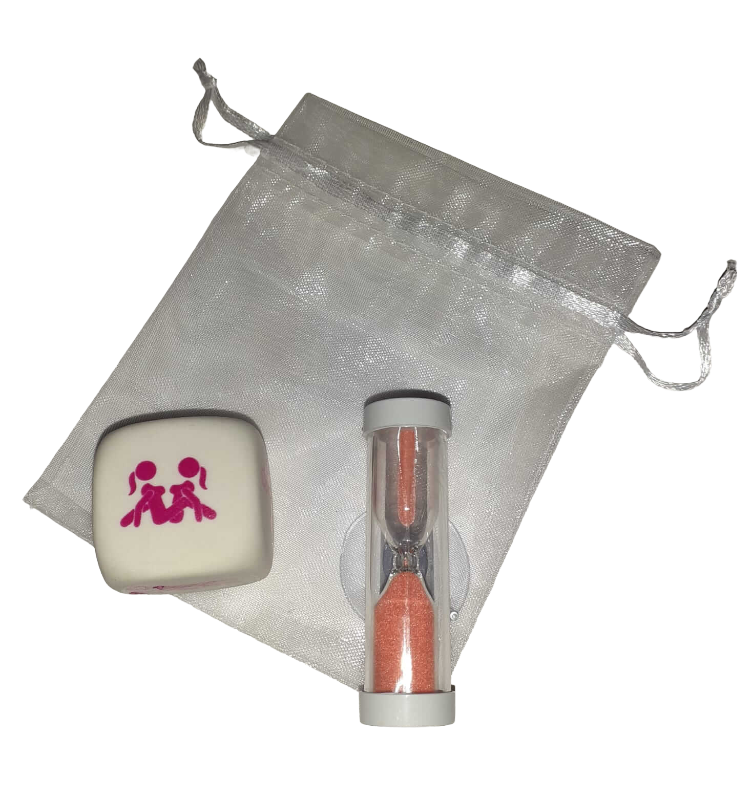 Atrévete a darle un giro emocionante a tus encuentros con esta bolsa que incluye un dado de posturas para chicas y un reloj.